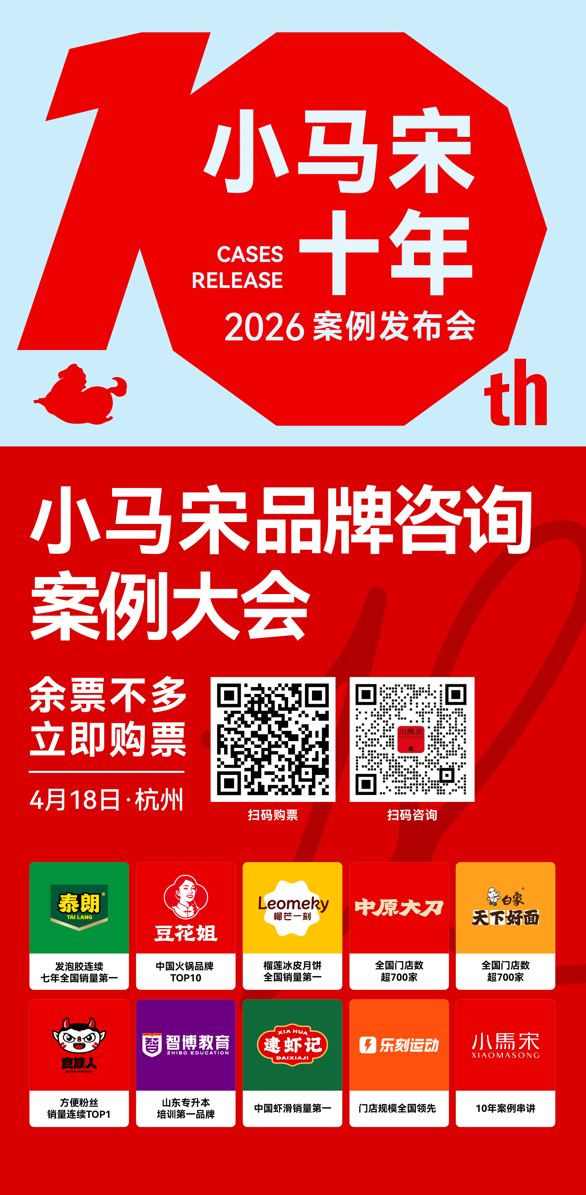 ps:如果你对企业背后的 【营销 & 经营】 方面有困惑,可以关注小马宋 4 月 18 日 在「杭 州」举办的「小马宋品牌咨询案例大会 (2026)」。