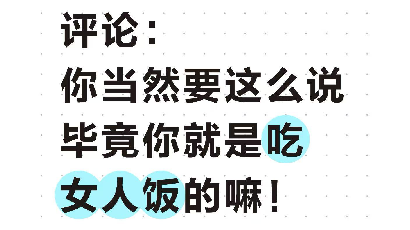 这期节目咱们聊聊「吃女人饭」这个话题,因为节目来源于视频,所以里面会有少量的音效或者音乐,希望大家能够谅解。(想看视频的朋友可以去微博、B站看这期节目:「你当然要这么说,毕竟你是吃女人这碗饭的嘛!」)