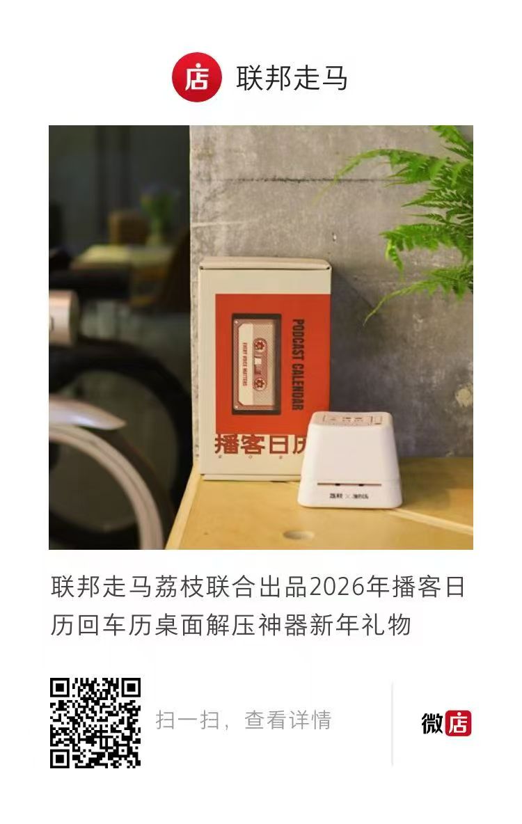 很多人现在开始买2026年的日历了,我们也给大家推荐一款日历,由联邦走马和荔枝APP联合出品的播客日历!汇集了广大优质中文播客内容,一天是一档播客节目,立场不明在其中也有一页哈!而且设计非常有趣,采用了复古的磁带和回车键的元素,有用又好玩。