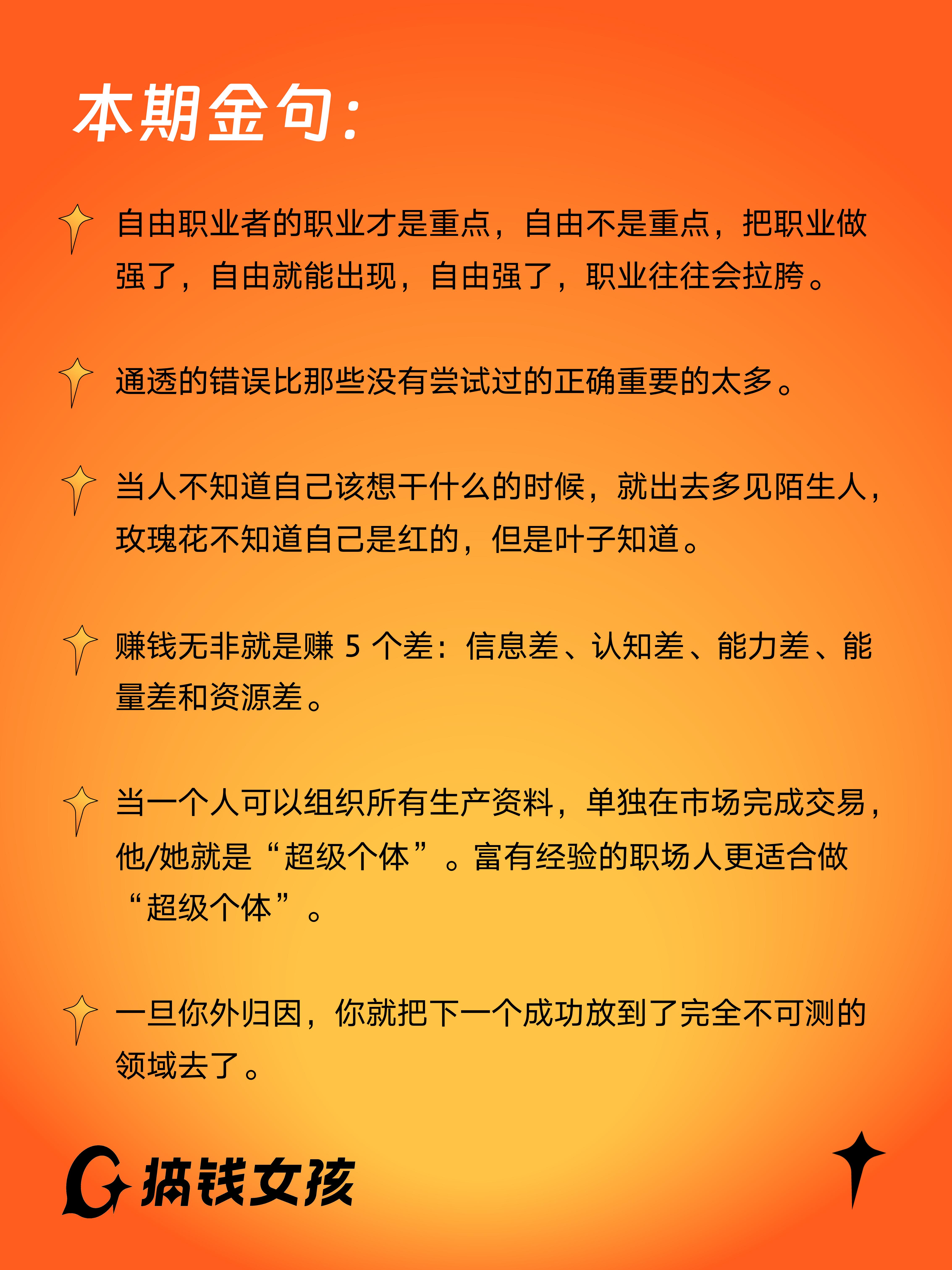 不管你是职场新人还是老人,不管是想搞副业还是想创业,都能在这里找到对应的良方,赶紧收听起来,一起拆掉思维里的墙!