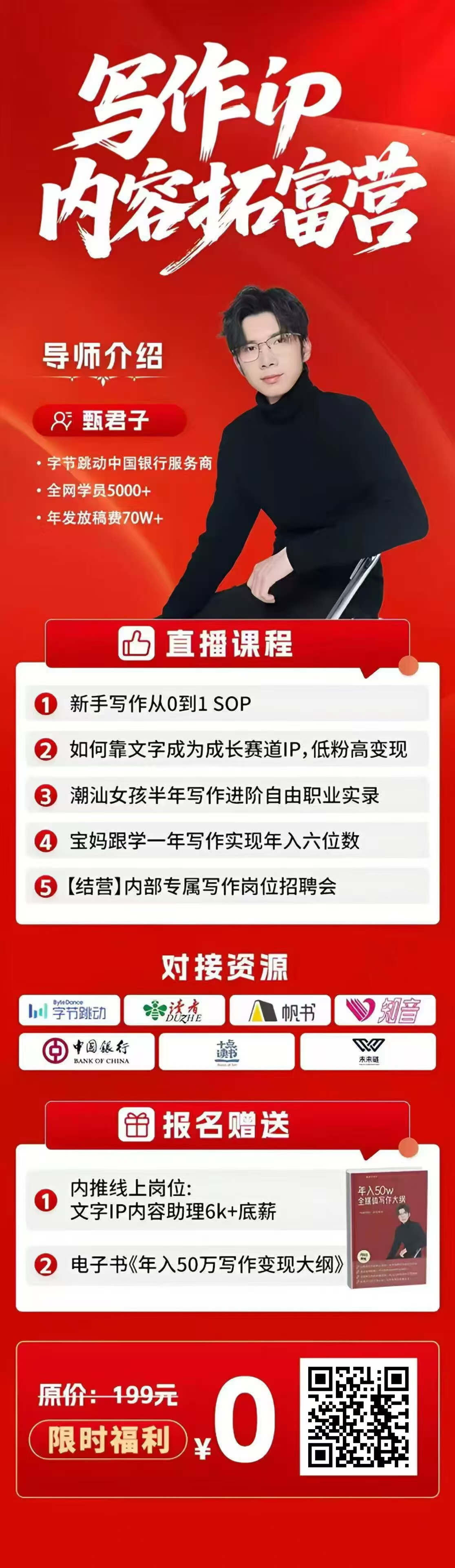 00后网络作协主席,7年公众号创作者,字节跳动、中国银行服务商,全网学员5000+,一年发放稿费70W+,前暴走漫画内容负责人,连续创业三年净利润年入七位数。