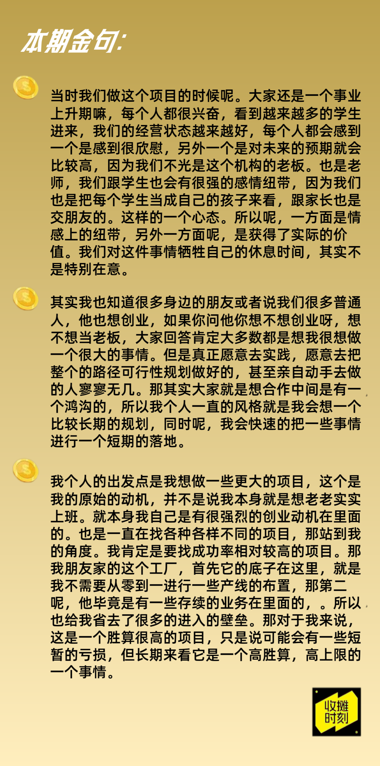 本期节目嘉宾卜嘉奇曾是一名年薪60万的金融精英,却用1000元在自家客厅开启了围棋培训副业,并稳健经营七年。他详细分享了如何零成本启动、应对疫情冲击,以及将单店做到年流水数十万的经验与局限。